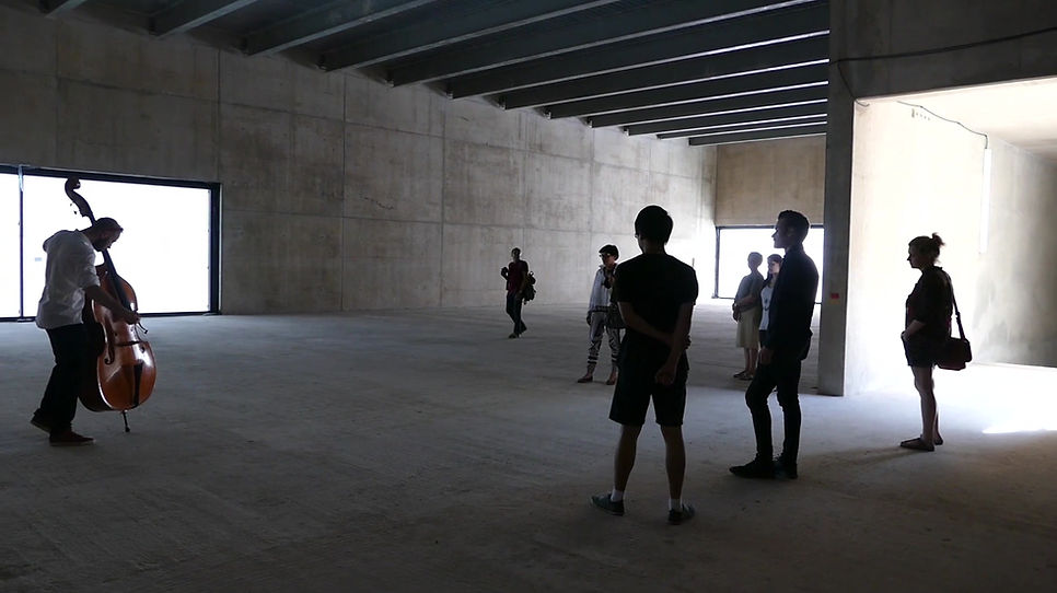 Die Musiker improvisieren und reagieren jeweils auf das, was die Räume durch ihren Hall an den einzelnen Musiker weitergeben, auf das was sie akustisch erreicht.